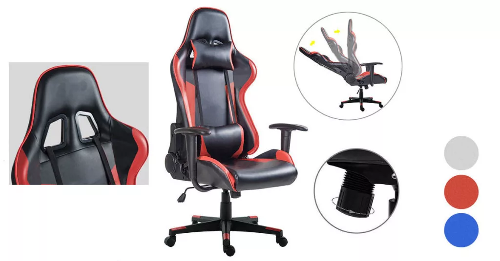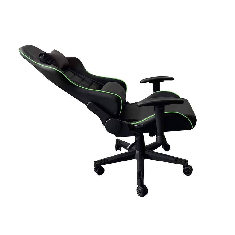 Forma si designul ergonomic a scaunului Gamer, inspirate de la scaunul masinilor de curse, asigura confort, relaxare precum si mentinerea unei posturi corecte. Capitonat cu spuma de grosimi diferite in regiunea cervicala, lombara si cotiere ofera un confort maxim. Recomandat atat pasionatilor de jocuri pe computer cat si celor a caror profesie necesita o sedere indelungata pe scaun. Inaltimea precum si gradul de inclinare a sezutului si spatarului sunt reglabile (sistem cilindric cu gaz si sistem balans). Pentru un confort optim este prevazut cu tetiera care detensioneaza gatul si perna lombara care detensioneaza spatele. Ambele perne sunt detasabile si reglabile.