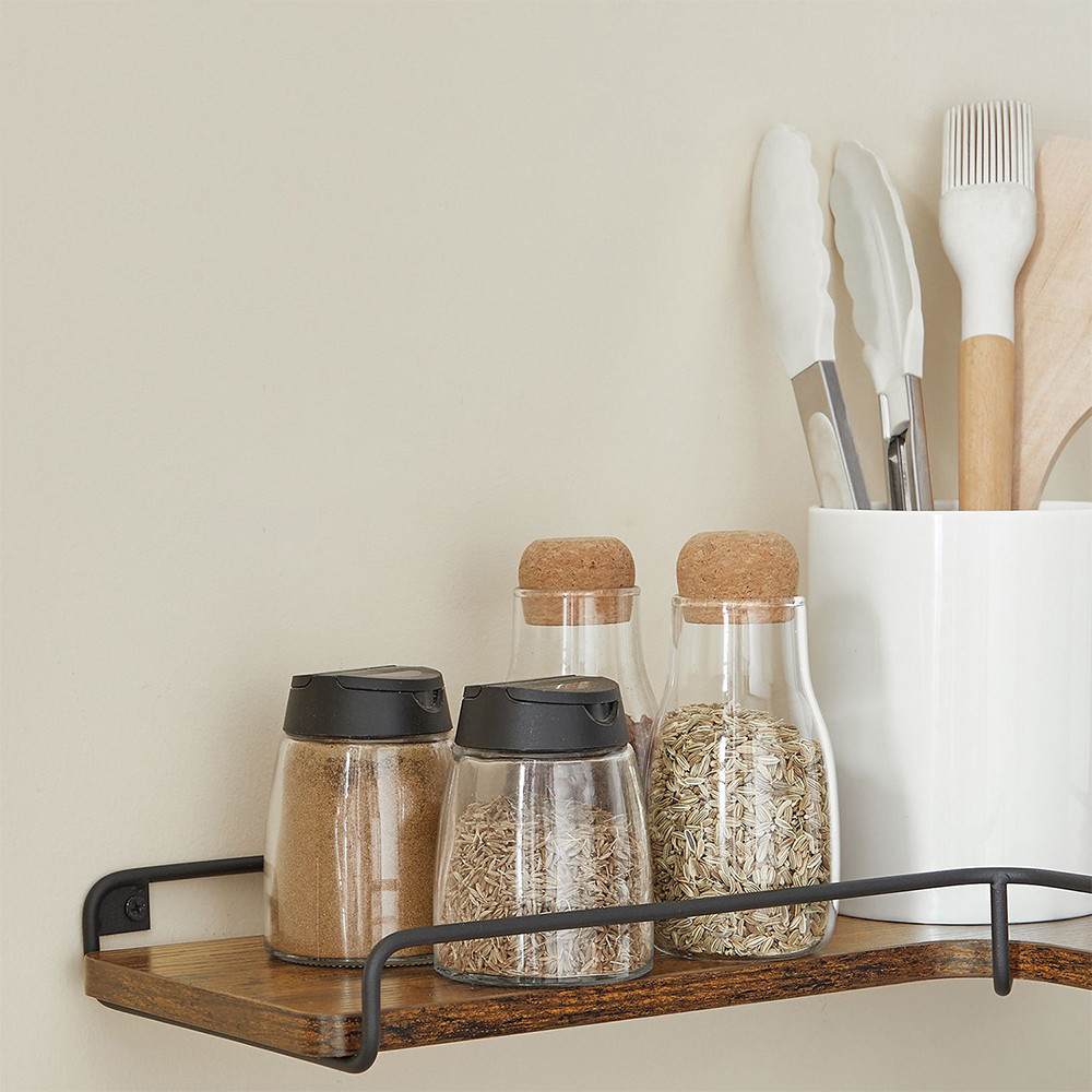 Plăcile de rafturi de culoare maro rustic și cadrul din oțel negru creează împreună un aspect modern, industrial, care se potrivește bine într-un living, dormitor, bucătărie sau chiar birou de acasă. Colțurile rotunjite sunt nu doar plăcute din punct de vedere estetic, ci și sigure.