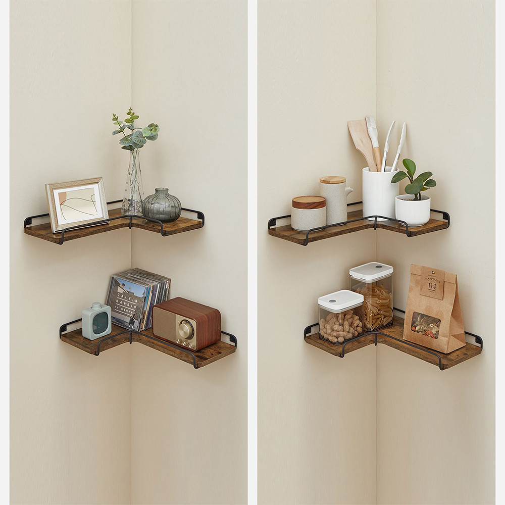 Designul asimetric al rafturilor – 40 cm lungime și 29 cm latură scurtă – îți permite să le instalezi pe partea stângă sau dreaptă, adaptându-se la configurația camerei. Perfecte pentru colțuri mai mici unde alte rafturi nu s-ar potrivi.