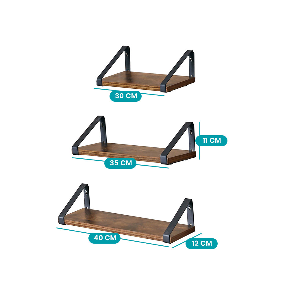 Acest set de 3 rafturi suspendate este alegerea ideală pentru a adăuga personalitate locuinței tale. Combinația dintre lemnul maro rustic și metalul negru aduce un aer industrial, perfect pentru living, dormitor sau birou.