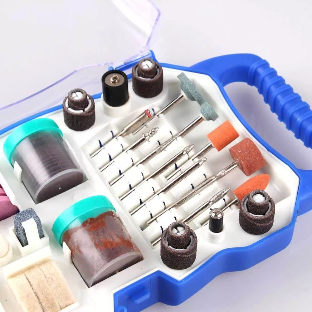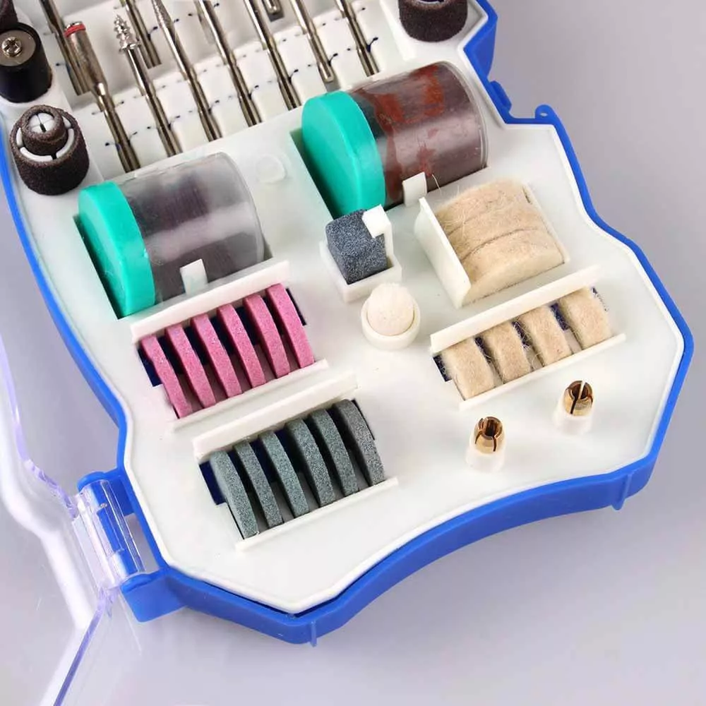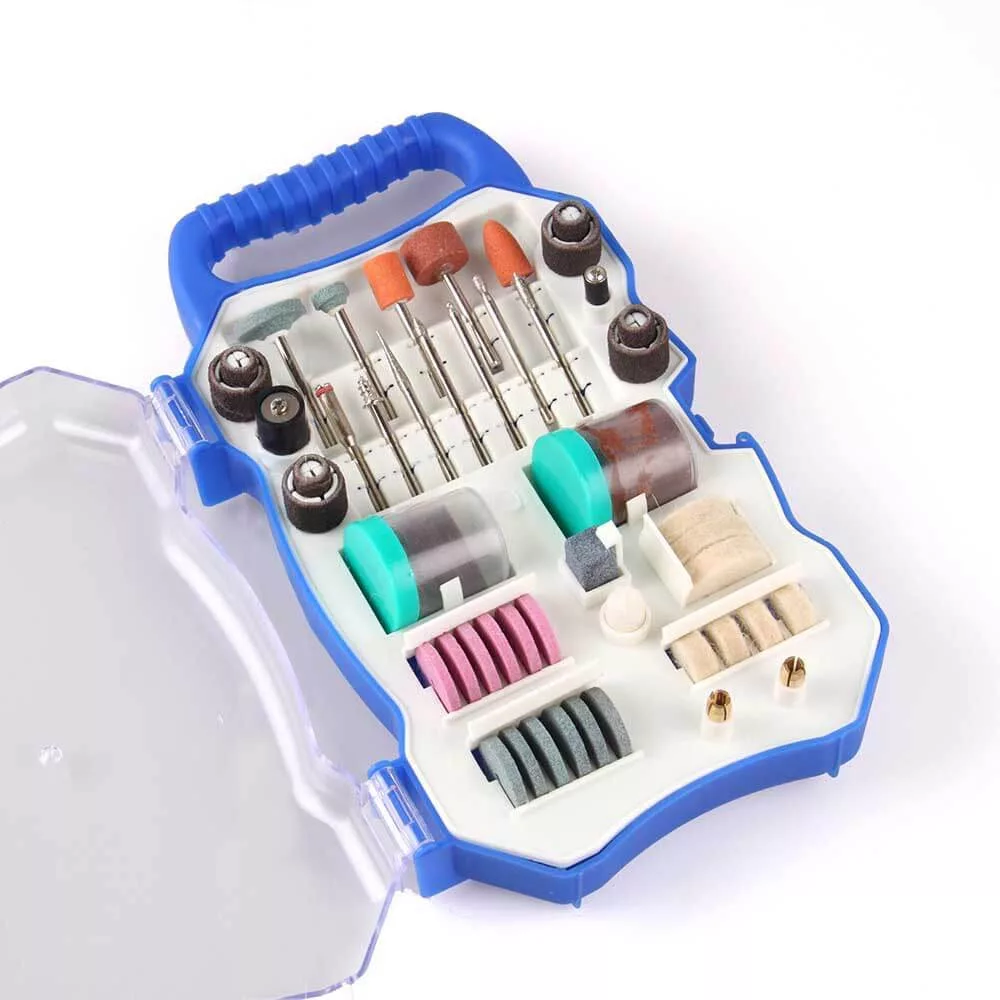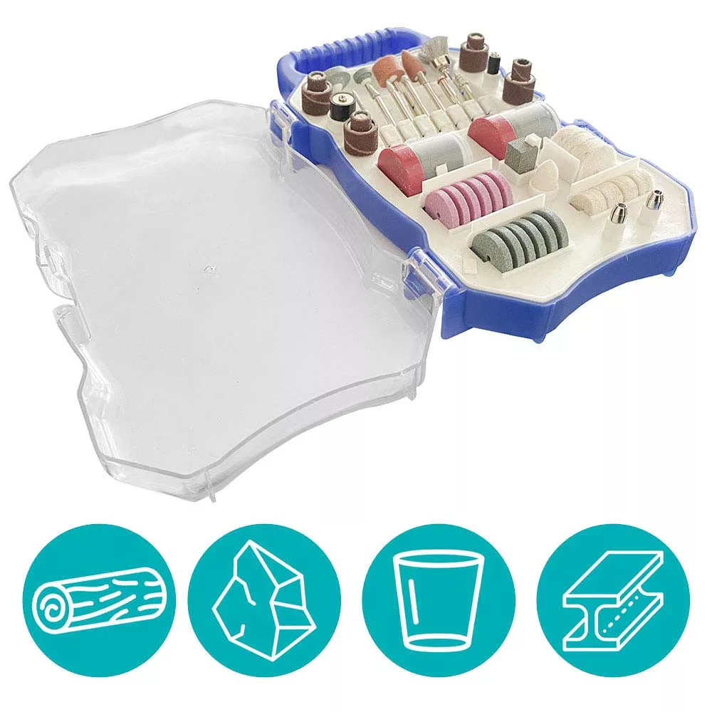 Kitul contine accesorii de diferite marimi si forme pentru efectuarea diverselor operatiuni necesare in realizarea unei game largi de proiecte, aplicatii in cele mai variate materiale: lemn, metal, piatra, plastic, sticla. Piesele setului sunt de inalta calitate, care va permite schimbarea rapida si facila a accesoriilor in timp ce lucrati.
