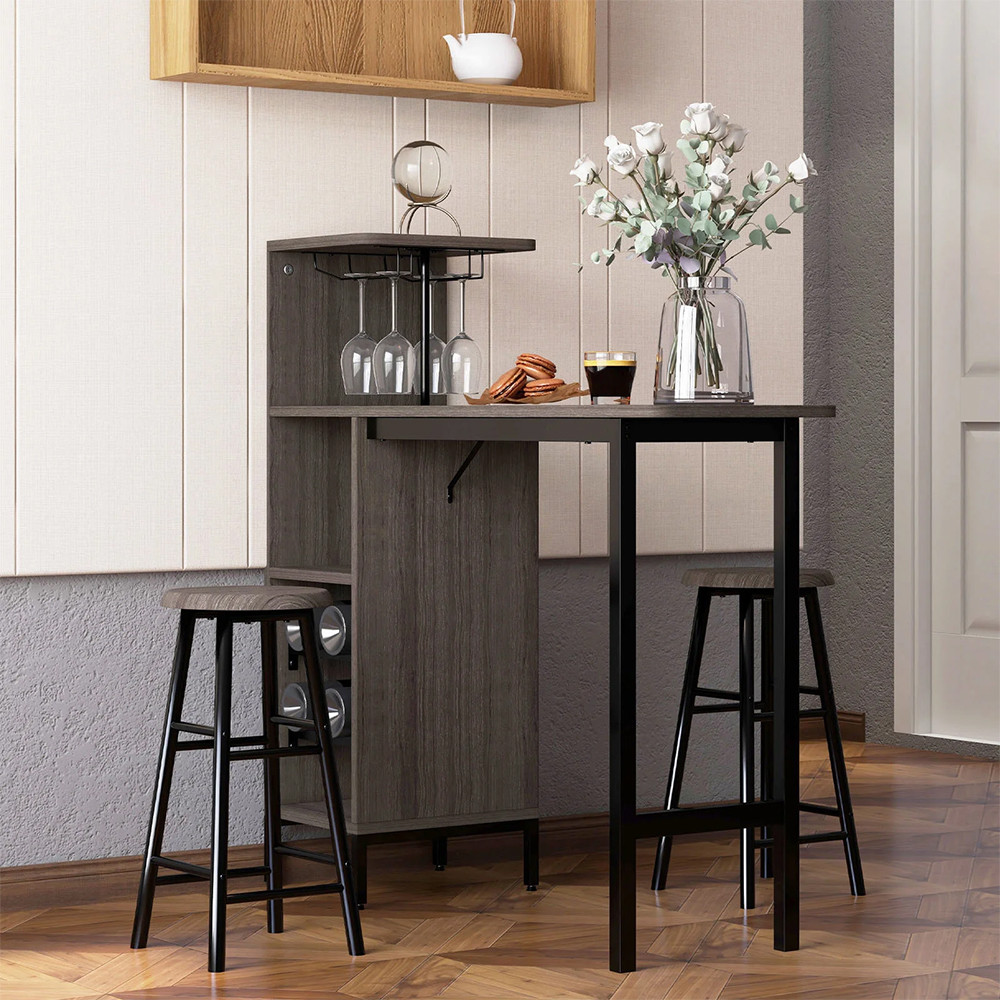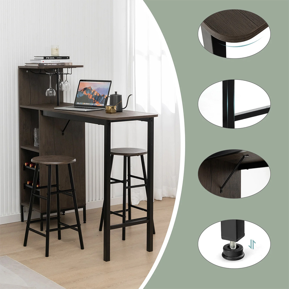 Adu atmosfera cafenelelor și barurilor de vin în casa ta cu acest set de masă de bar și scaune. Suprafața rustică cu aspect de lemn și cadrul metalic negru creează un aspect modern, dar confortabil, făcându-l perfect pentru living, zona de dining sau chiar bucătărie.
