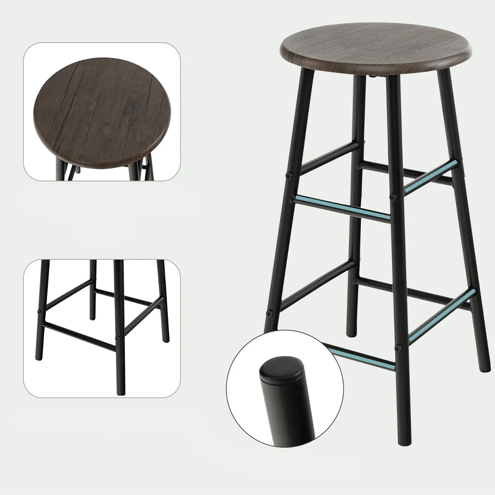 Cele două scaune de bar rotunde vin cu o suprafață de șezut confortabilă și stabilă, precum și cu un suport pentru picioare, făcându-le ideale pentru conversații mai lungi. Cadrele metalice sunt întărite cu un suport triangular, sporind capacitatea de încărcare și durabilitatea, în timp ce suprafețele din MDF ale mesei și scaunelor sunt ușor de curățat.