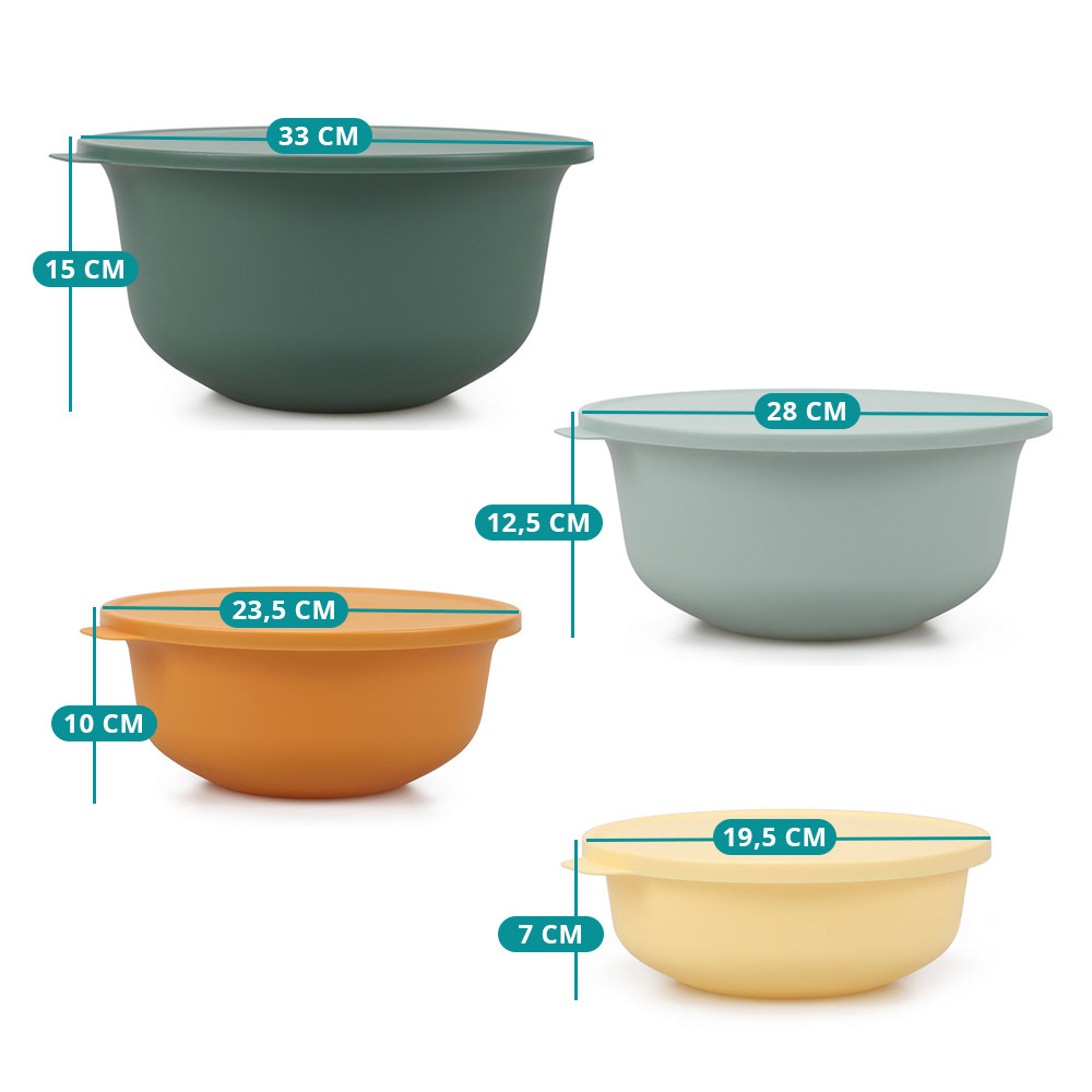 Recipiente de dimensiuni diferite îți permit să depozitezi totul, de la porții mici până la cantități pentru întreaga familie, toate într-un singur loc. Sunt ideale pentru salate, fructe, mese gătite sau ingrediente pregătite.