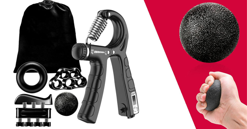 Setul conține cinci instrumente diferite, fiecare antrenând grupuri musculare specifice: degetele, palma, încheietura și antebrațul. Cu inel de cauciuc, ou de antrenament, prindere, tonificator degete și grip master poți efectua exerciții variate.