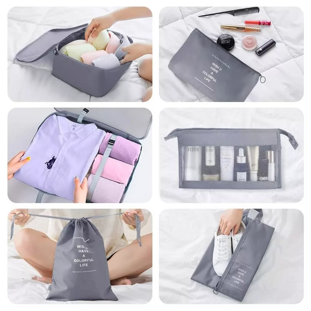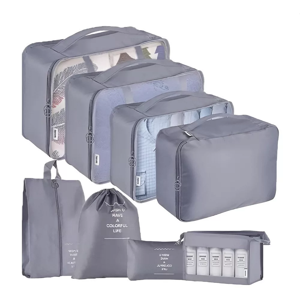 Acest set de 8 organizatoare pentru bagaje te ajută să-ți păstrezi hainele și accesoriile la locul lor pe durata călătoriei. Datorită dimensiunilor variate, poți alege cu ușurință piesa potrivită pentru orice valiză sau geantă.