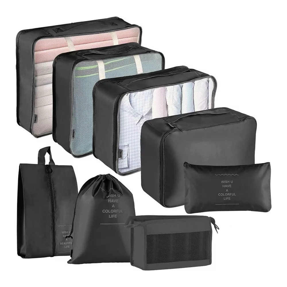 Acest set de 8 organizatoare pentru bagaje te ajută să-ți păstrezi hainele și accesoriile la locul lor pe durata călătoriei. Datorită dimensiunilor variate, poți alege cu ușurință piesa potrivită pentru orice valiză sau geantă.