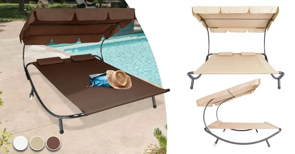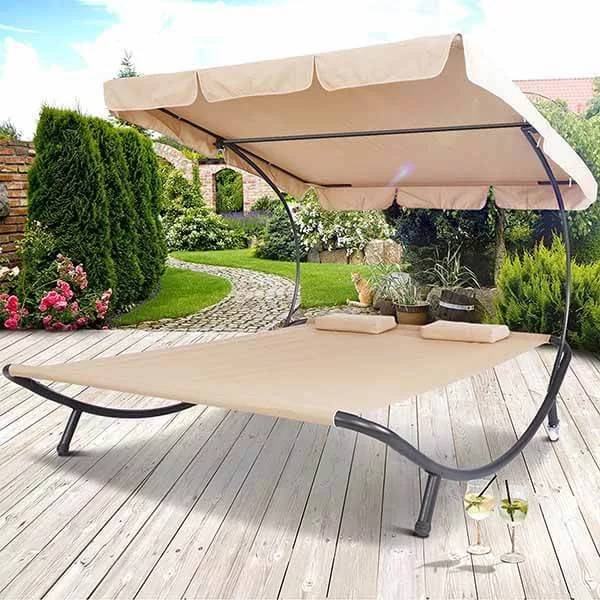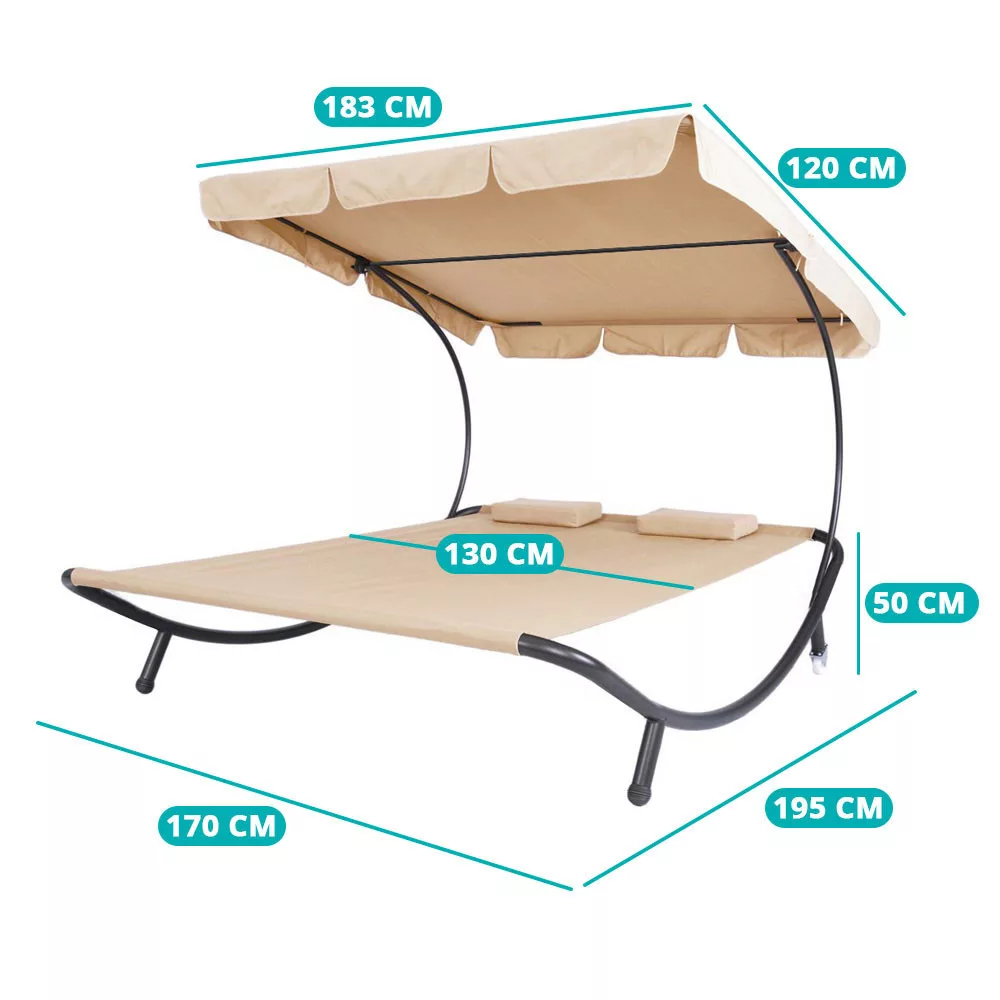 Patul de grădină dublu este ideal pentru relaxare în doi. Suprafața sa generoasă de întins oferă confort atât la umbră, cât și la soare.