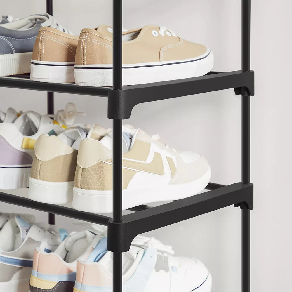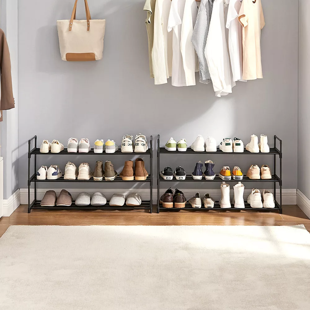 A két darab állvány egymásra helyezhető, így növelheted a tárolókapacitást. Kompakt mérete miatt tökéletes előszobába, hálószobába vagy gardróbba is.