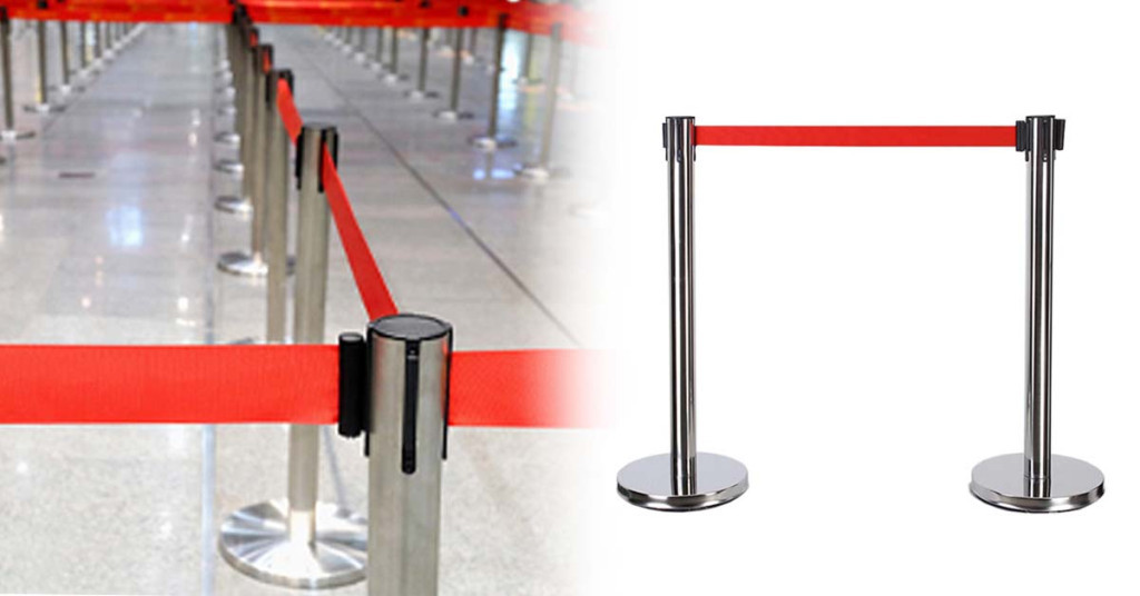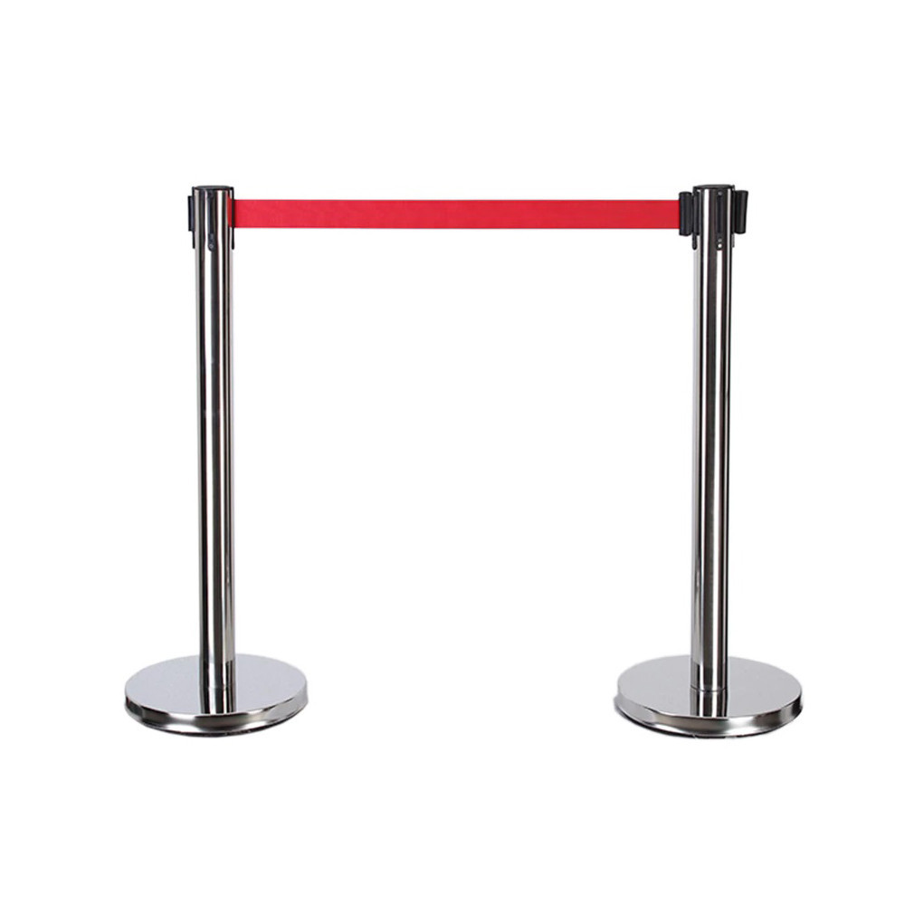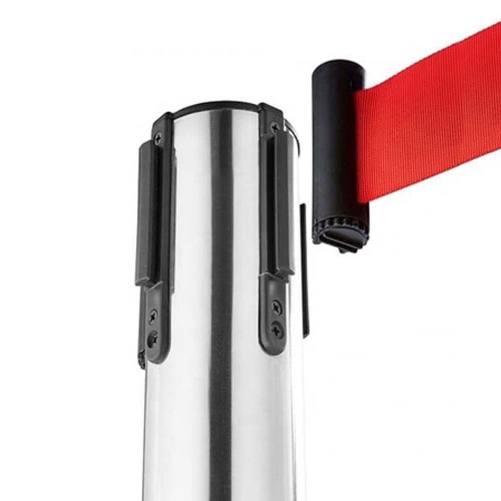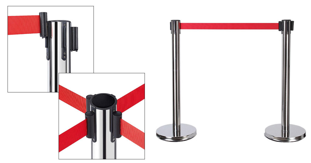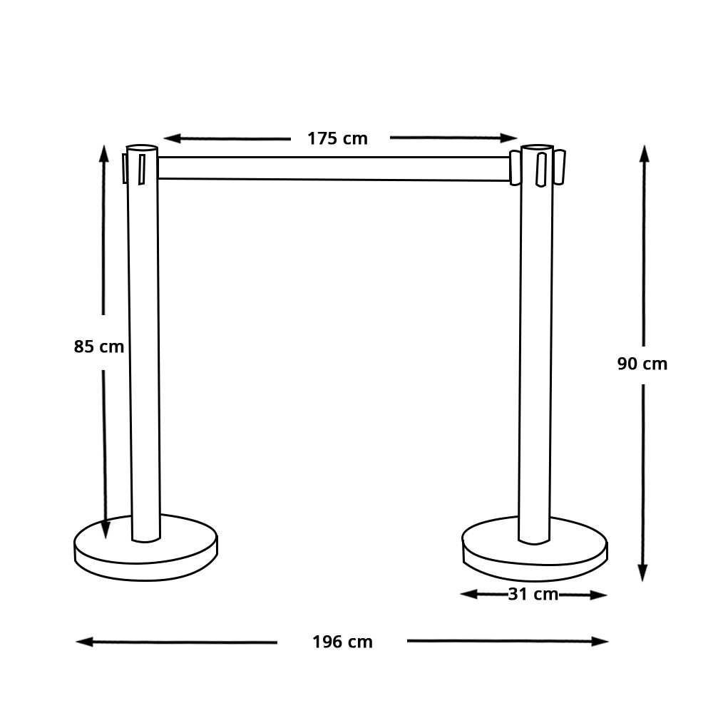 Stâlpii metalici și bazele grele oferă stabilitate stâlpului de delimitare, chiar și în locuri aglomerate. Banda rezistentă din poliester poate fi întinsă până la 175 cm, ceea ce permite delimitarea unei suprafețe de până la 2 metri. Înălțimea de 90 cm a stâlpilor asigură o utilizare confortabilă și un aspect estetic.