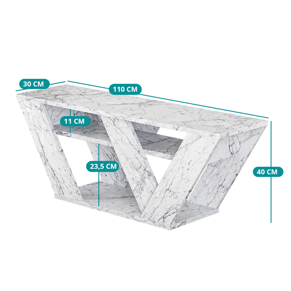 Suprafața cu model de marmură conferă livingului tău un aspect sofisticat și luminos, adăugând un caracter modern spațiului. Designul său geometric este un element de design remarcabil care evidențiază televizorul tău.