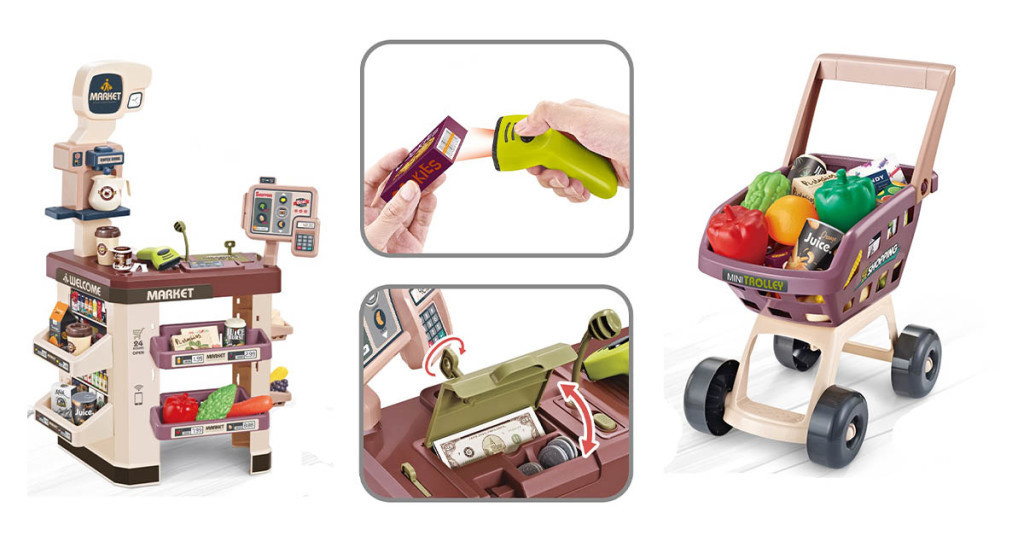 Cine nu ar vrea sa-si faca cumparaturi, mai ales cand poate obtine orice? Cu supermarketul din 60 de piese, copiii pot invata demersul cumparaturilor, pot crea o lista de cumparaturi in mod creativ si pot intelege mai usor cum functioneaza o zi la supermarket. Jucaria le dezvolta abilitatile expresive si de comunicare, pot juca o situatie care a aparut pe parcursul unei cumparaturi sau le putem arata chiar noi ce situatii pot aparea.