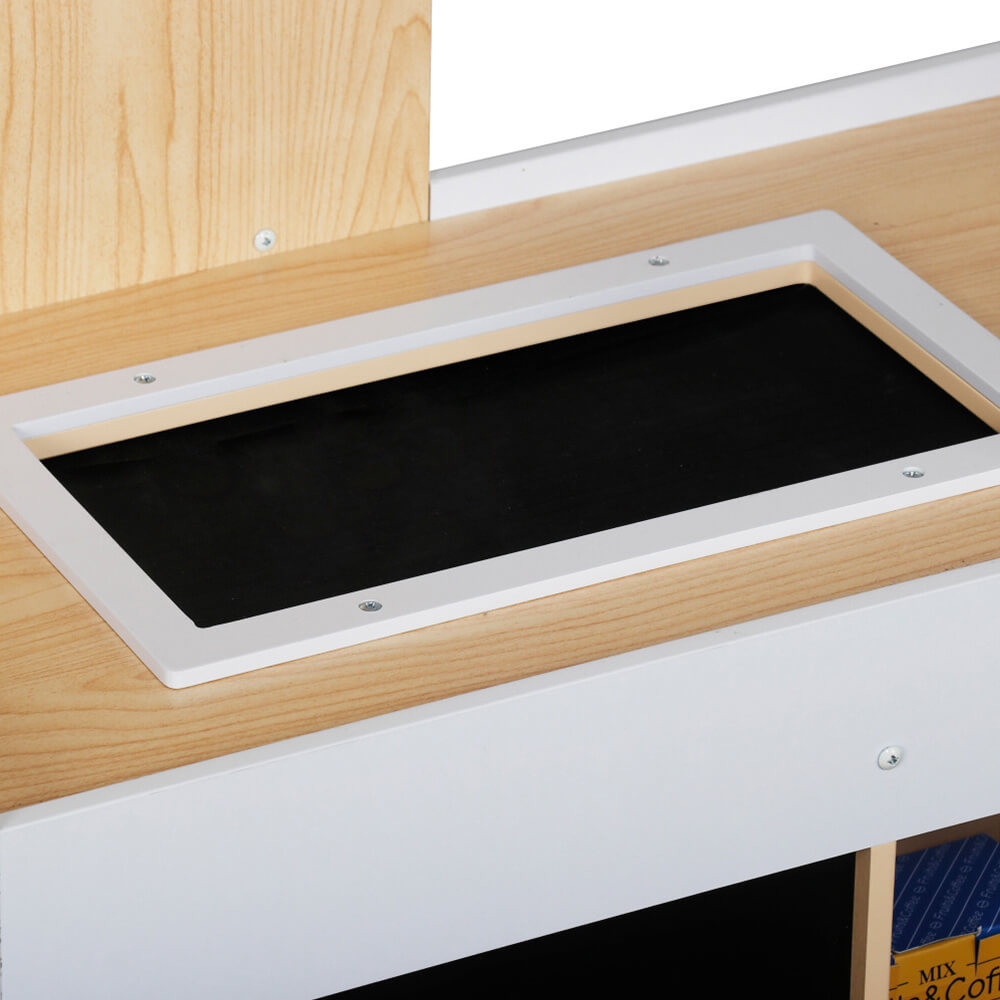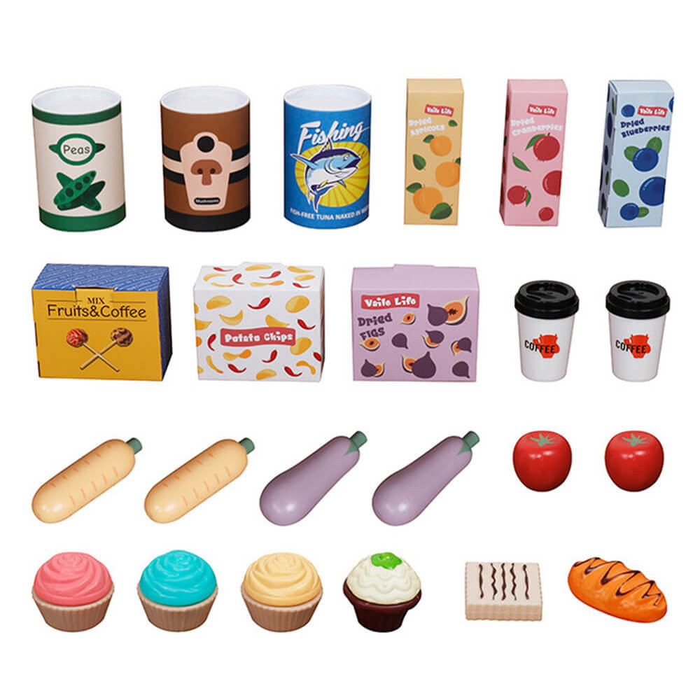 Elementele supermarketului de jucărie sunt ușor de asamblat, iar structura stabilă garantează siguranță. Polițele și compartimentele variate încurajează jocul organizat.