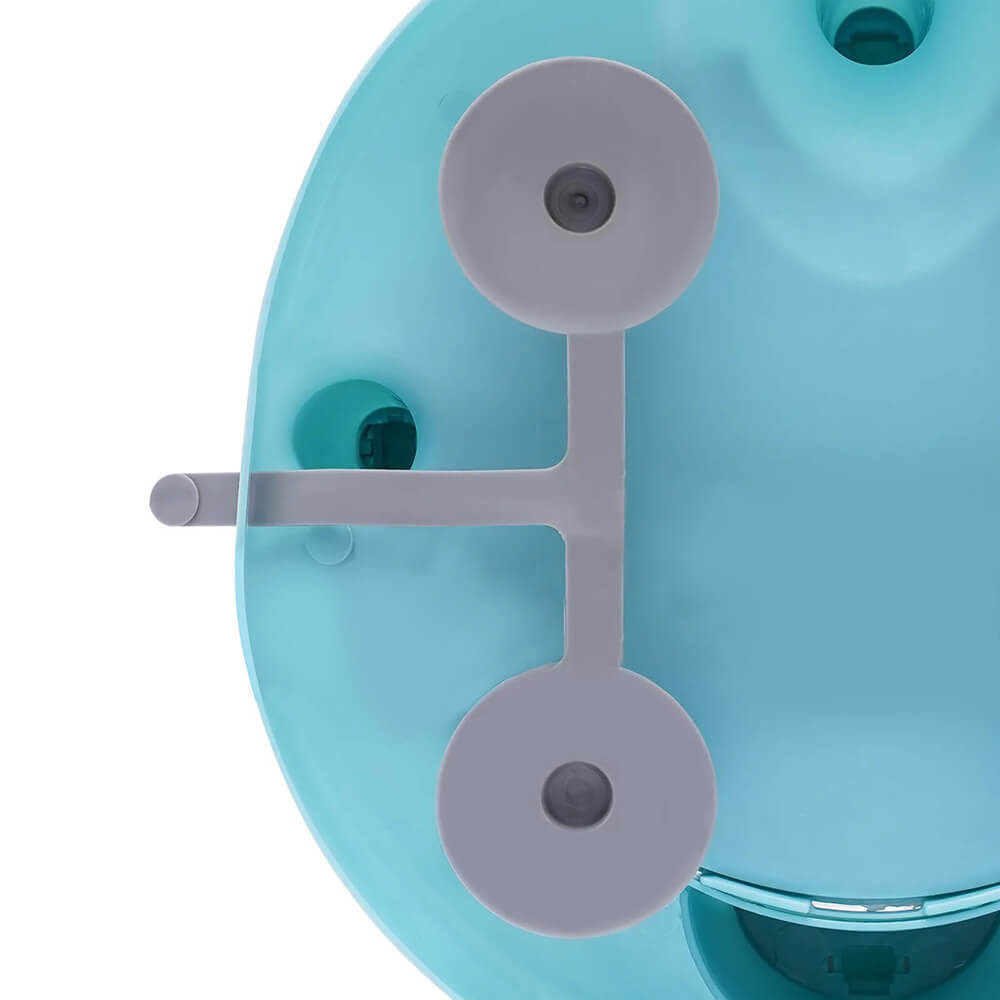 Baza cu 4 ventuze fixează scaunul ferm în cadă, asigurând siguranța copilului în timpul băii. Spătarul special conceput și bara de protecție previn răsturnarea copilului, oferind în același timp o poziție confortabilă.