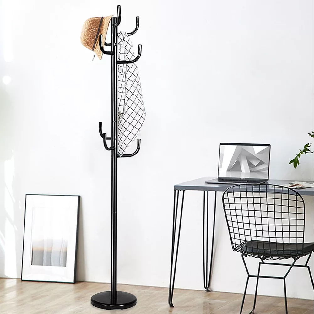 Datorită cadrului său metalic stabil, acoperit cu pulbere, și bazei rotunde grele, acest suport oferă o stabilitate excelentă și poate susține până la 25 kg. Cele 8 cârlige sunt ideale pentru a agăța mai multe articole de îmbrăcăminte simultan.