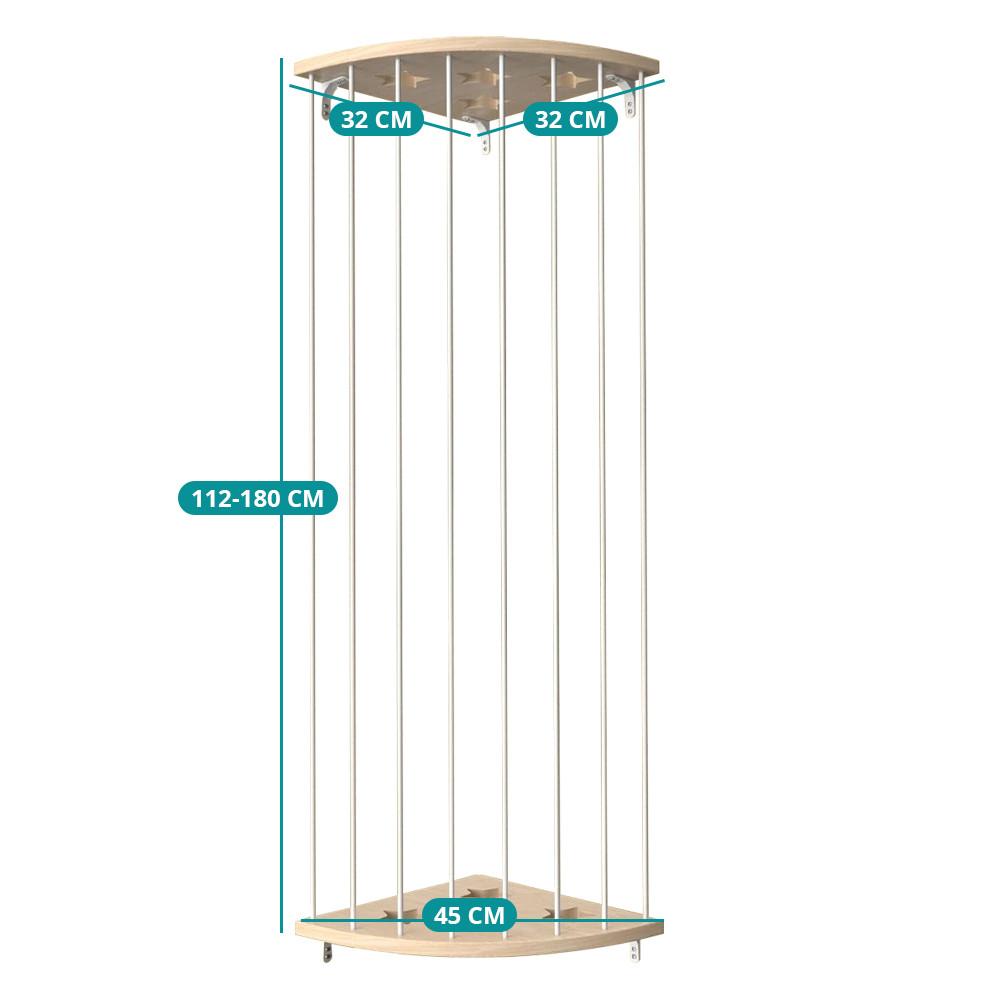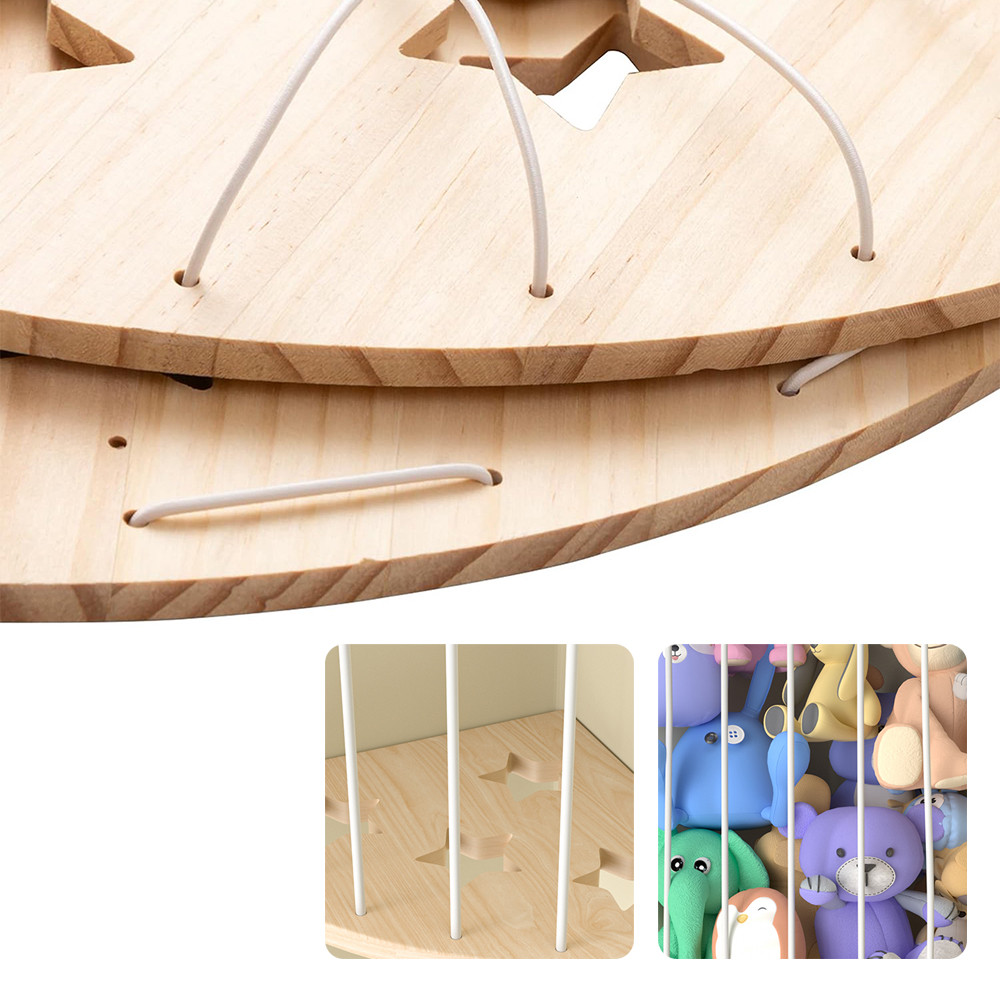 Suportul de plușuri montat în colț ajută la menținerea camerei copilului mereu organizate și aerisite. Jucăriile de pluș își găsesc, în sfârșit, propriul loc, fără a ocupa podeaua sau mobilierul.