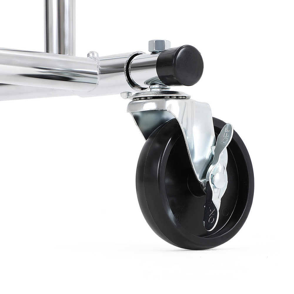 Roțile de 12 cm diametru permit deplasarea ușoară a suportului, chiar și atunci când este complet încărcat. Două roți sunt prevăzute cu frână pentru o fixare sigură atunci când este nevoie.