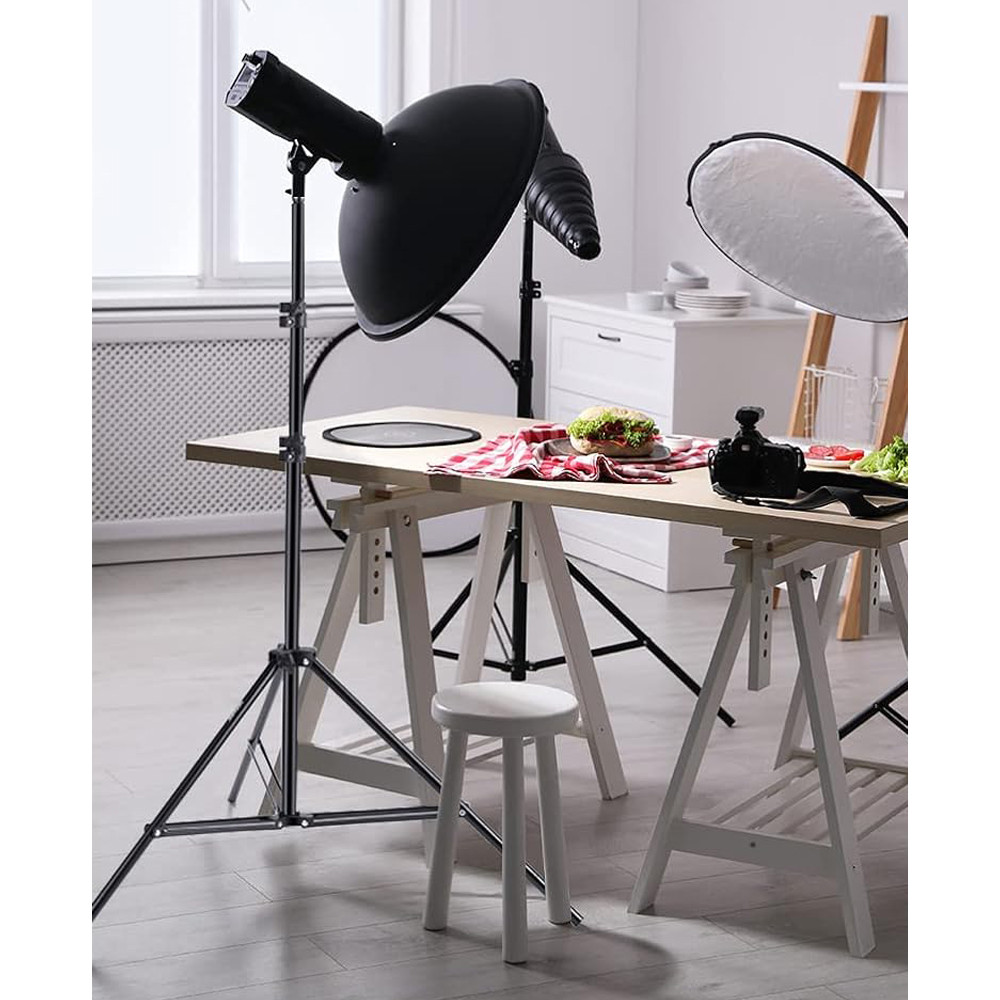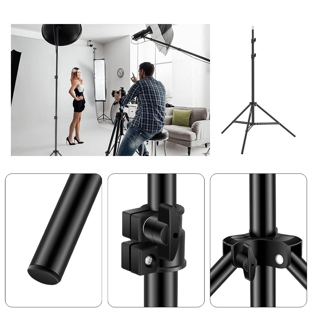 Acest stativ foto ușor, dar solid, oferă suport ideal pentru diverse surse de lumină, permițând ajustarea precisă a iluminării pentru portrete, fotografie de produs sau filmări. Designul compact îl face simplu de transportat.