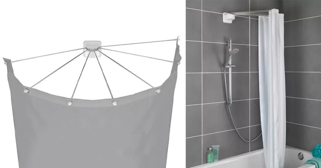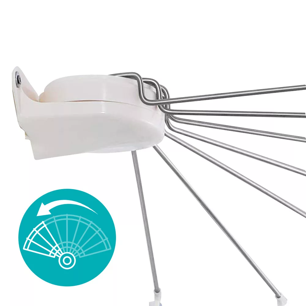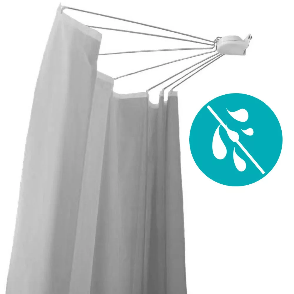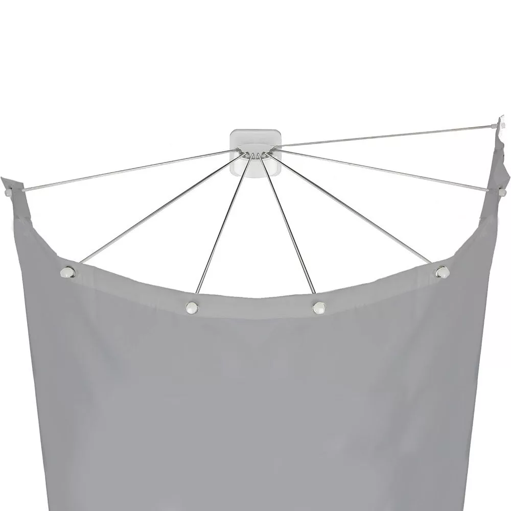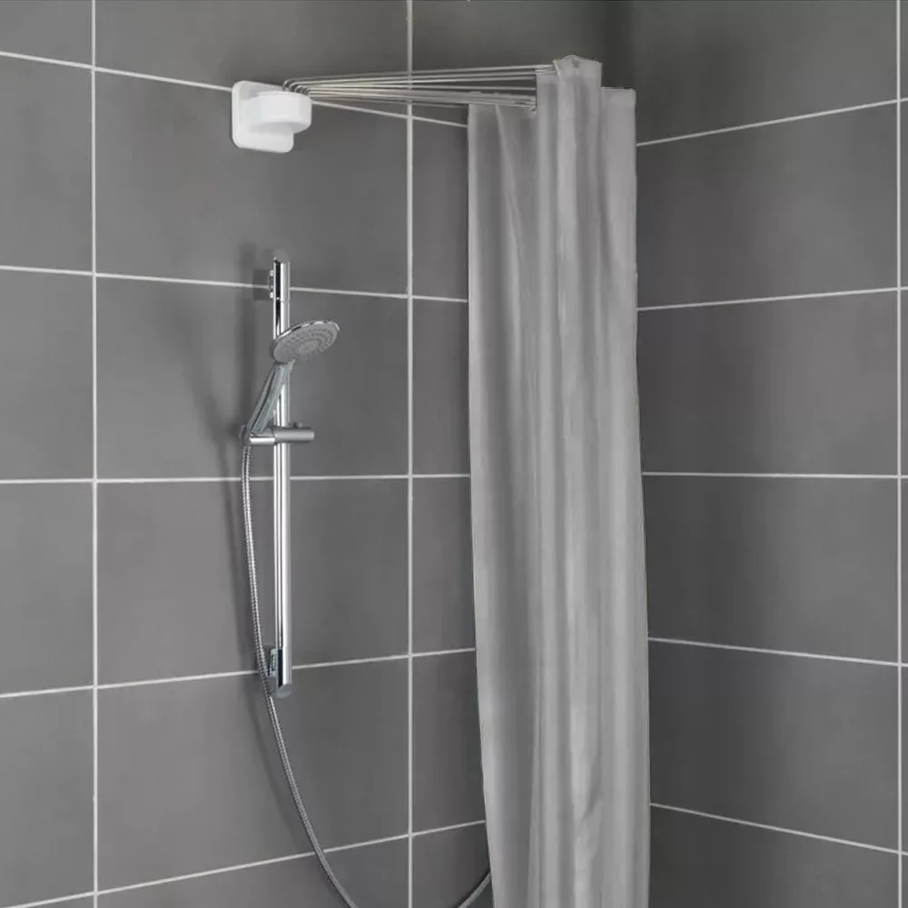 Această bară pentru perdea de duș în formă de umbrelă este ideală pentru utilizarea eficientă a spațiului în băile de dimensiuni reduse. Bara pivotantă lateral poate fi rabatată când nu este utilizată, eliberând astfel spațiu în baie.