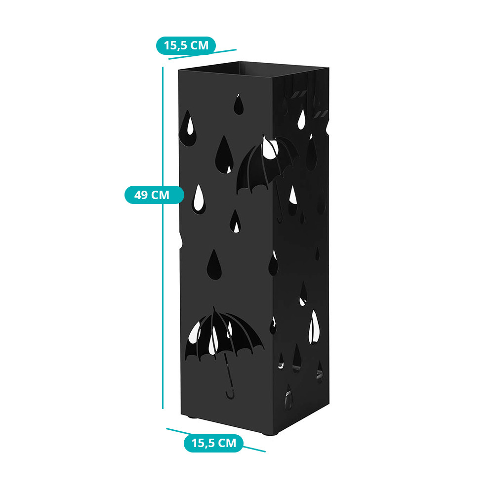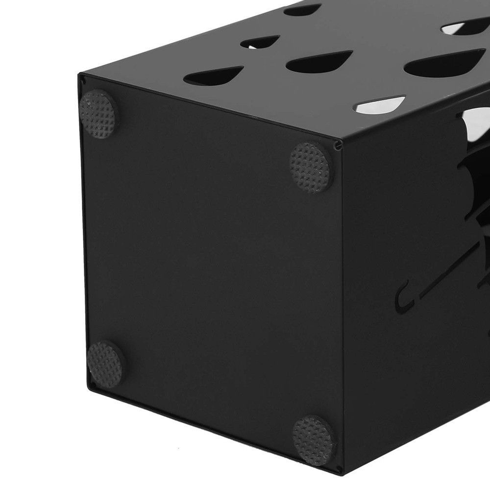 Suportul cu dimensiunea de bază de 15,5 × 15,5 cm oferă suficient spațiu pentru mai multe umbrele lungi. Cele 4 cârlige incluse în pachet (2 lungi, 2 scurte) sunt ideale pentru organizarea umbrelelor pliabile, bastoanelor sau a altor accesorii mici.