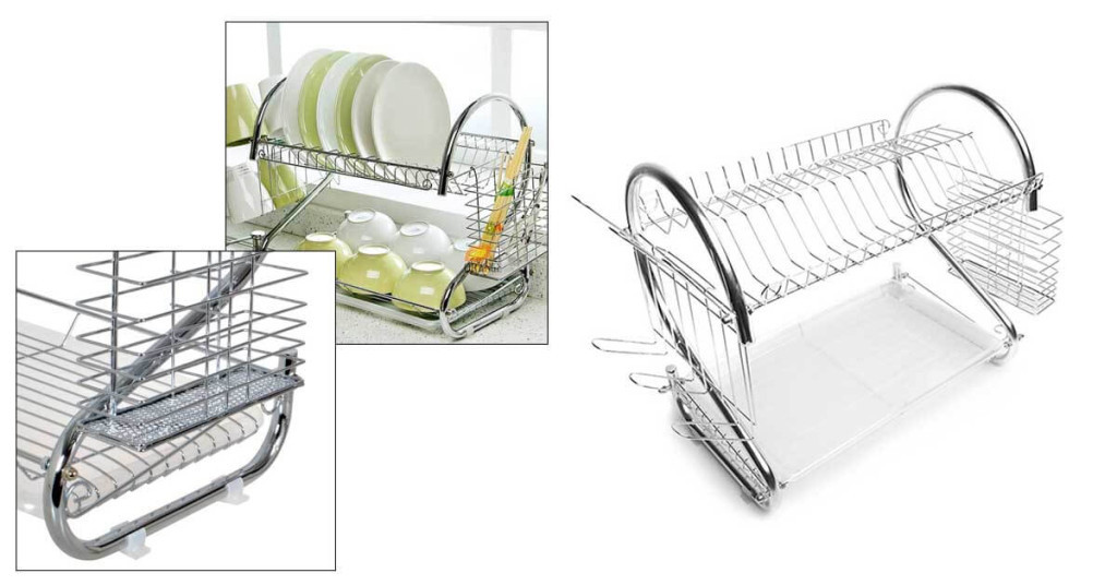 Un produs practic pentru bucataria dumneavoastra. Usureaza sarcinile zilnice ale gospodinelor prin uscarea vaselor. Tacamul, farfuria sau paharul se usuca rapid si cu usurinta. Apa de pe vase nu se scurge in toate directiile, ci se colecteaza in tava de sub suport. Are patru nivele: nivelul superior pentru farfurii, nivelul inferior pentru vase mai mari si pahare din sticla, iar suporturile mici laterale sunt pentru uscarea tacamurilor, capacelor la vase sau a cestilor.