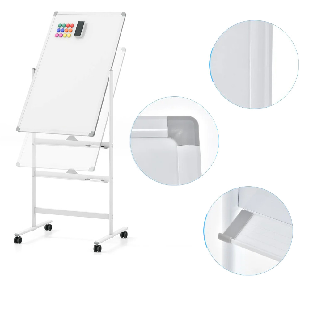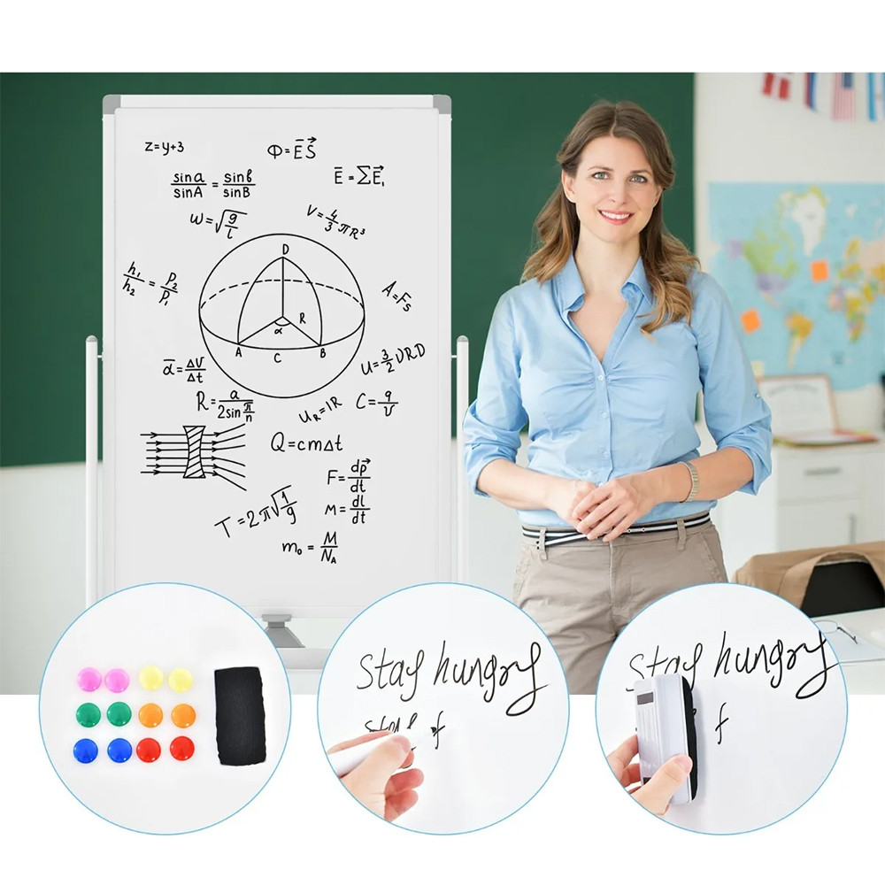 Această tablă flip chart este instrumentul perfect pentru săli de clasă, birouri și învățare acasă. Suprafața de 60 × 90 cm oferă suficient spațiu pentru note, diagrame sau prezentări, în timp ce tabla poate fi rotită și blocată la 360°.