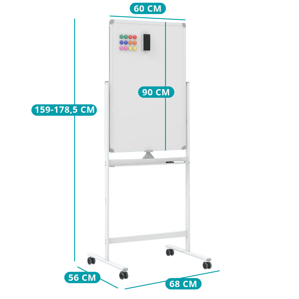 Înălțimea tablei poate fi ajustată în două poziții (între 159–178.5 cm), făcând-o confortabilă pentru utilizatori de toate vârstele. Este ideală pentru predare, întâlniri sau sesiuni de brainstorming creativ.