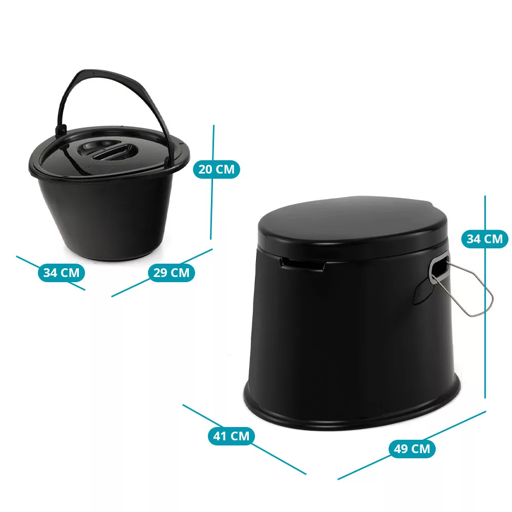 Această toaletă portabilă este alegerea perfectă pentru camping, drumeții, plimbări cu barca sau călătorii lungi cu mașina, atunci când este nevoie de o soluție rapidă și igienică. Datorită dimensiunilor sale compacte, poate fi amplasată cu ușurință, oferind în același timp o utilizare stabilă.