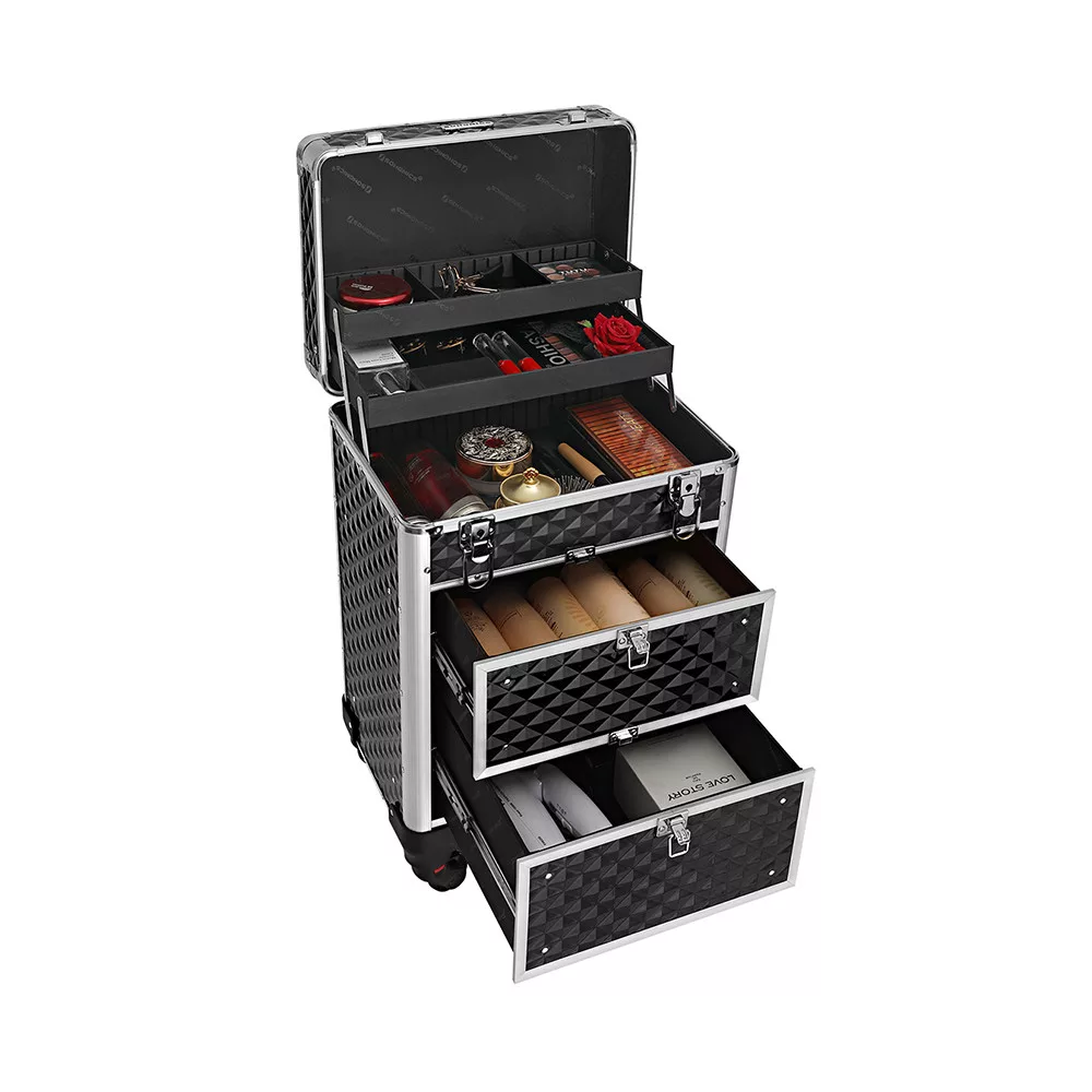 Cu trolerul profesional pentru machiaj, îți poți organiza cu ușurință toate produsele cosmetice. Sertarul superior se deschide automat, oferind acces rapid la cele mai folosite articole.