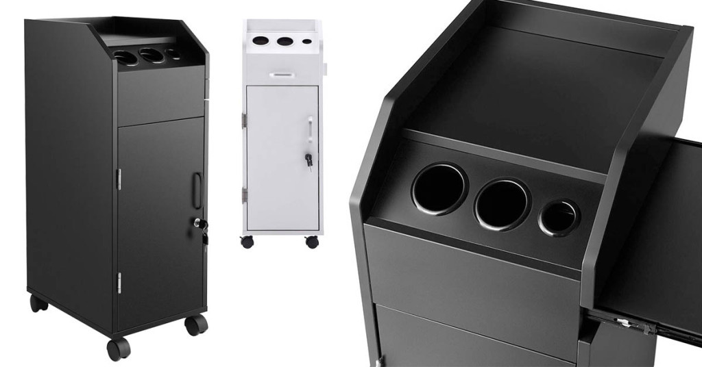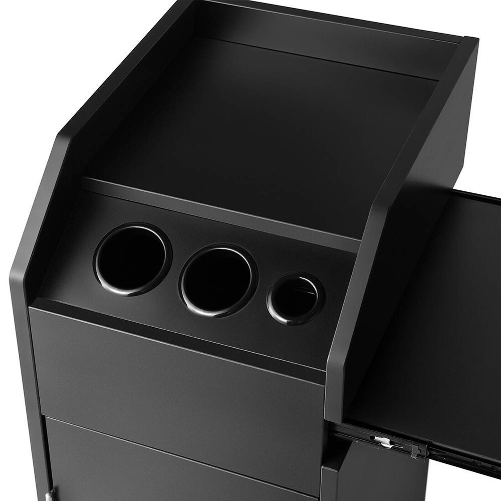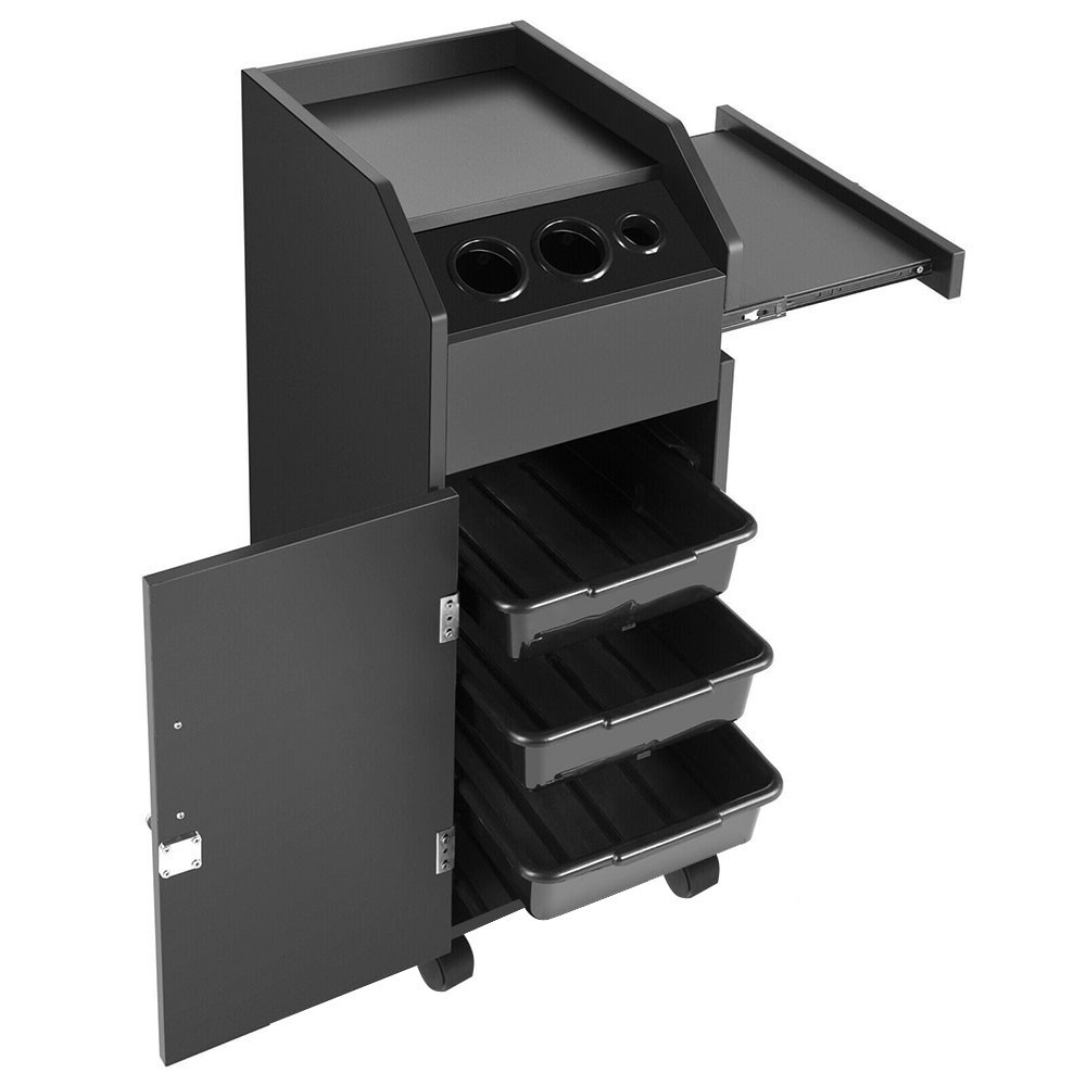 Ușa cu închidere a trolerului oferă un spațiu sigur pentru păstrarea echipamentelor valoroase. Sertarele pot fi îndepărtate și reintroduse cu ușurință, permițând acces rapid la ustensile. Compartimentele interioare sunt adânci și încăpătoare, menținând ordinea optimă în salon.