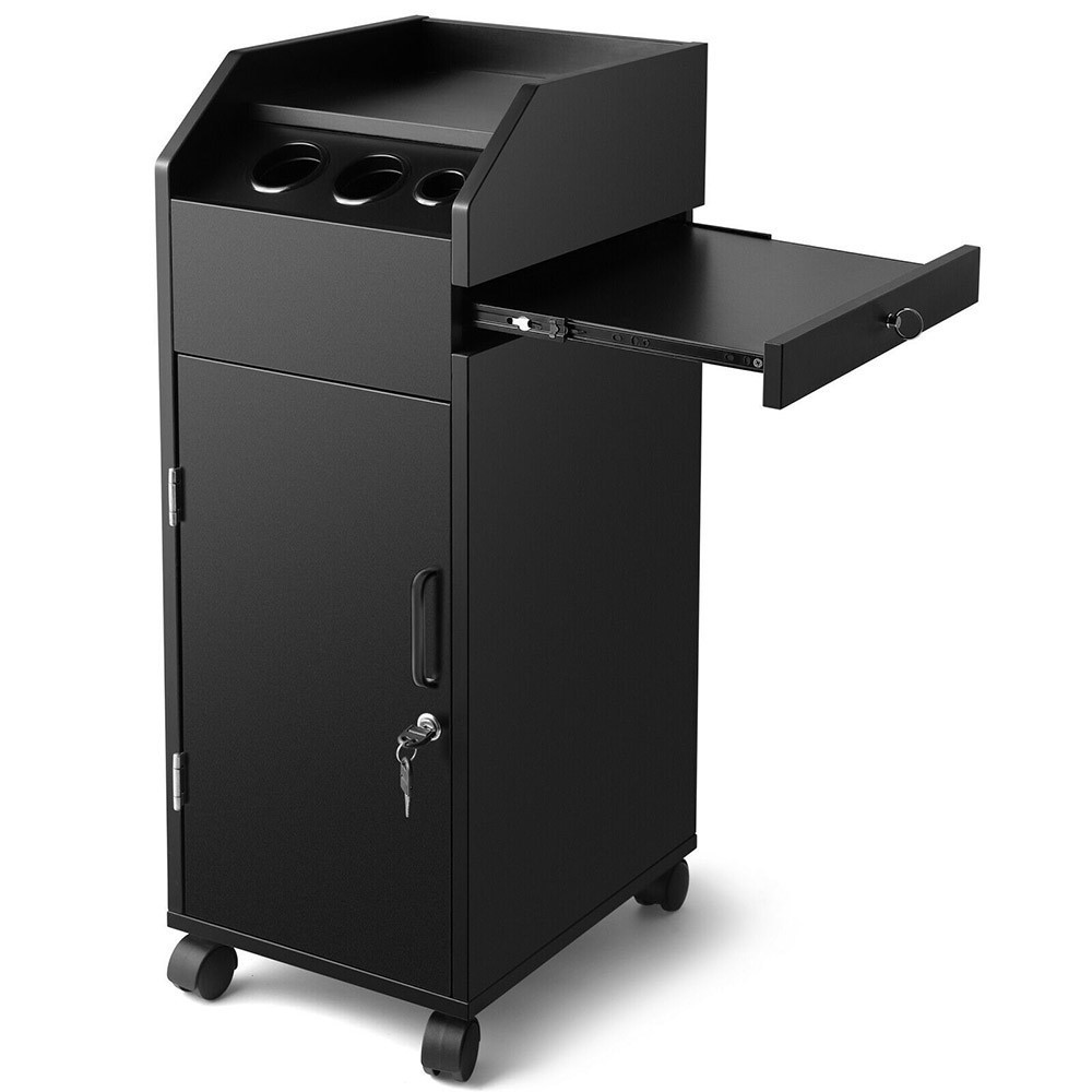 Cele patru roți durabile (diametru 4,5 cm) permit deplasarea rapidă și fără efort în diferite zone ale salonului. Tava laterală extensibilă oferă spațiu suplimentar pentru accesoriile utilizate frecvent, fiind ideală în zilele aglomerate.